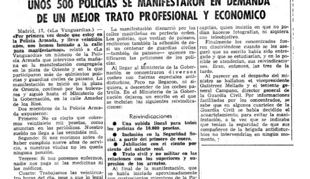 AUGC: La lucha de los guardias civiles por sus derechos: la manifestacion de 1976 por la Seguridad Social.