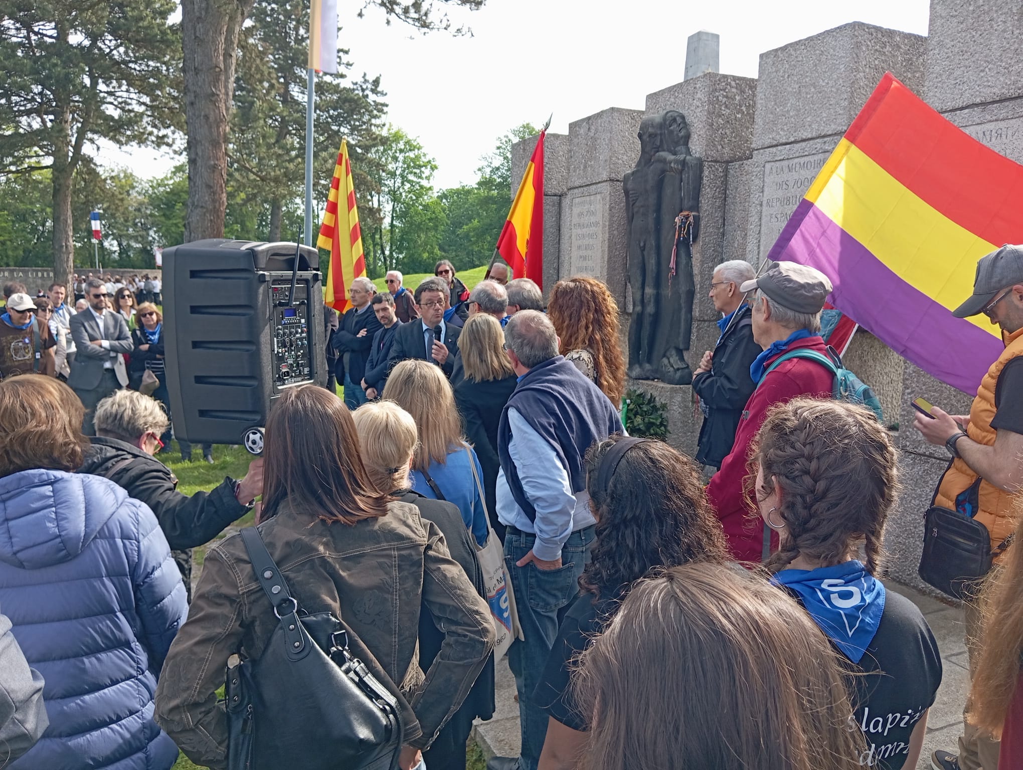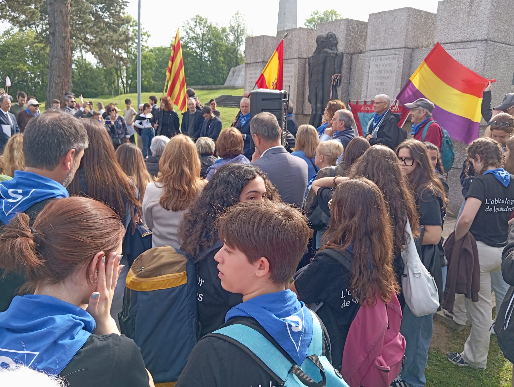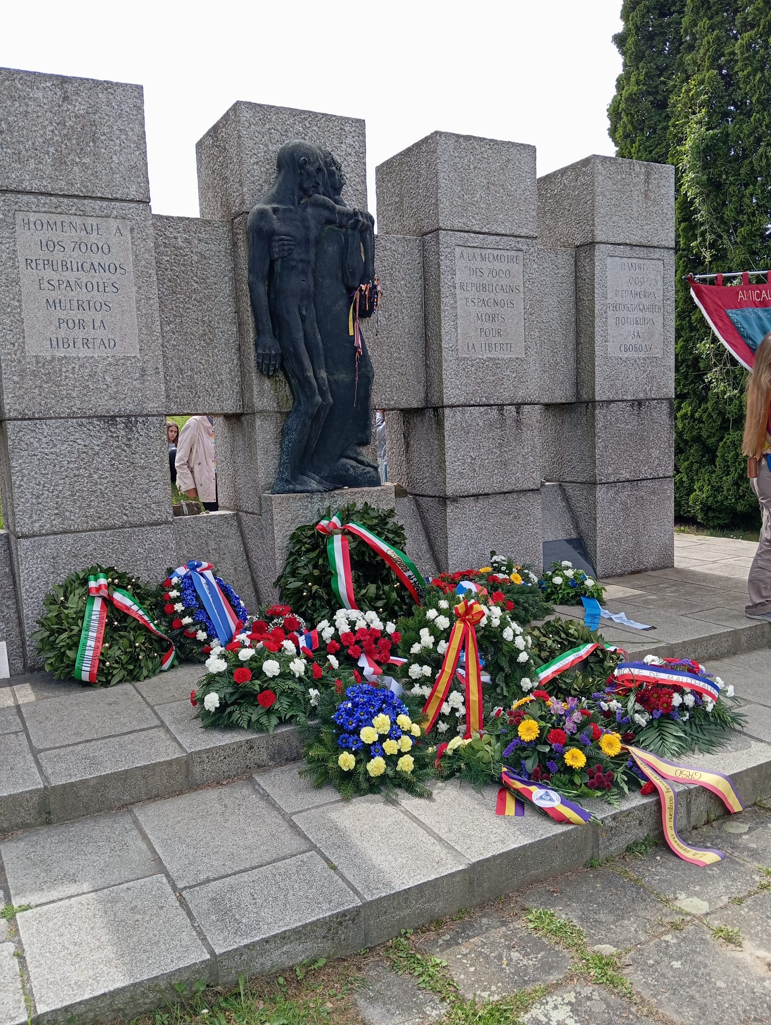 A continuación en el Memorial de Francia, nos congregamos todos los españoles, entre ellos una nutrida representación de varios institutos de bachillerato catalanes, para compartir con sus autoridades civiles y militares y numerosísimo público, el homenaje con varias intervenciones en donde se mencionaron a los republicanos españoles, que fue cerrado con la interpretación de la Marsellesa.