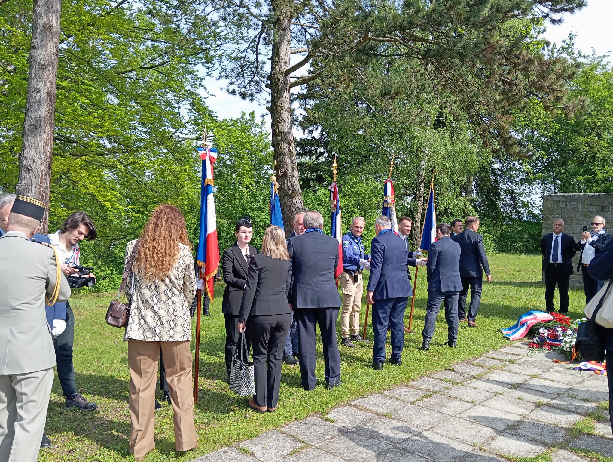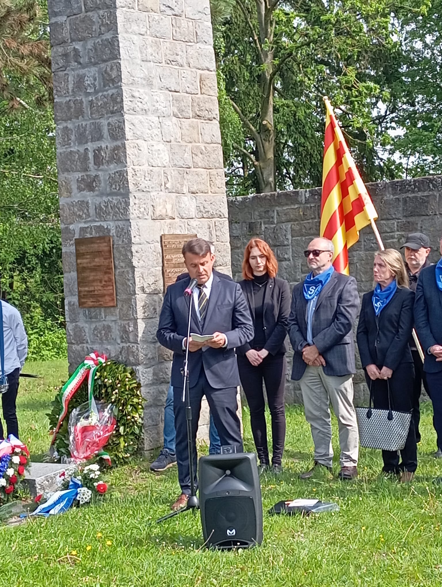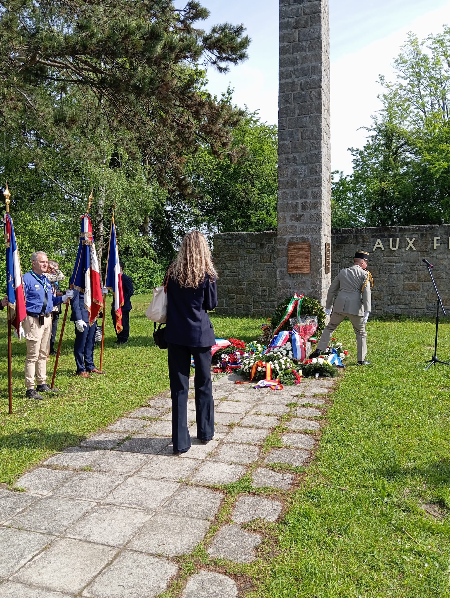 A continuación en el Memorial de Francia, nos congregamos todos los españoles, entre ellos una nutrida representación de varios institutos de bachillerato catalanes, para compartir con sus autoridades civiles y militares y numerosísimo público, el homenaje con varias intervenciones en donde se mencionaron a los republicanos españoles, que fue cerrado con la interpretación de la Marsellesa.