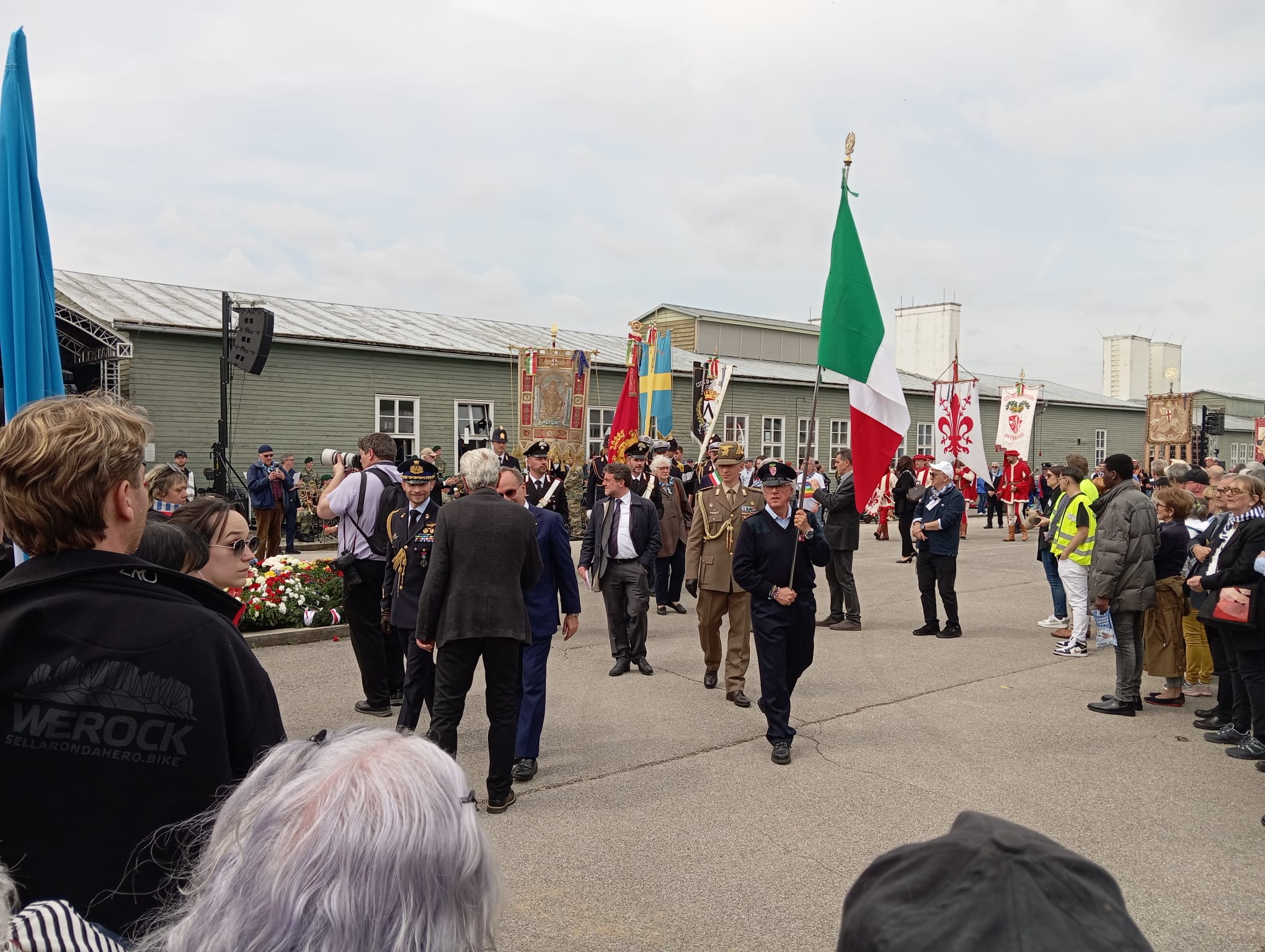Contra el pronóstico del tiempo inestable con chubascos, el día se ha presentado luminoso y fresquito. No se podía pedir más para realzar el buen desarrollo de los actos. Muchísimos participantes, más que en otras ediciones, destacando la presencia de infinidad de autobuses procedentes de toda Italia, ocupados mayoritariamente por jóvenes.
