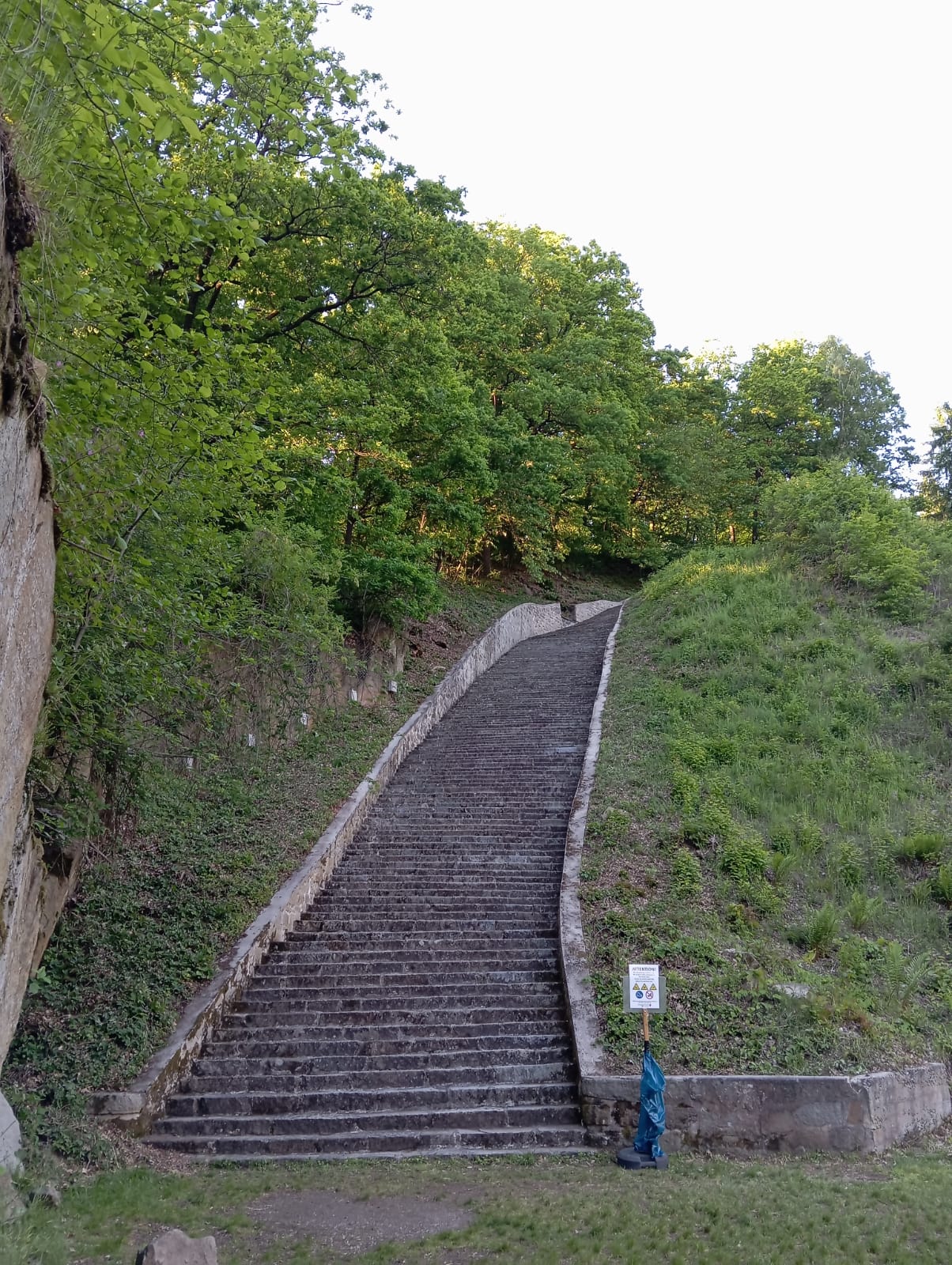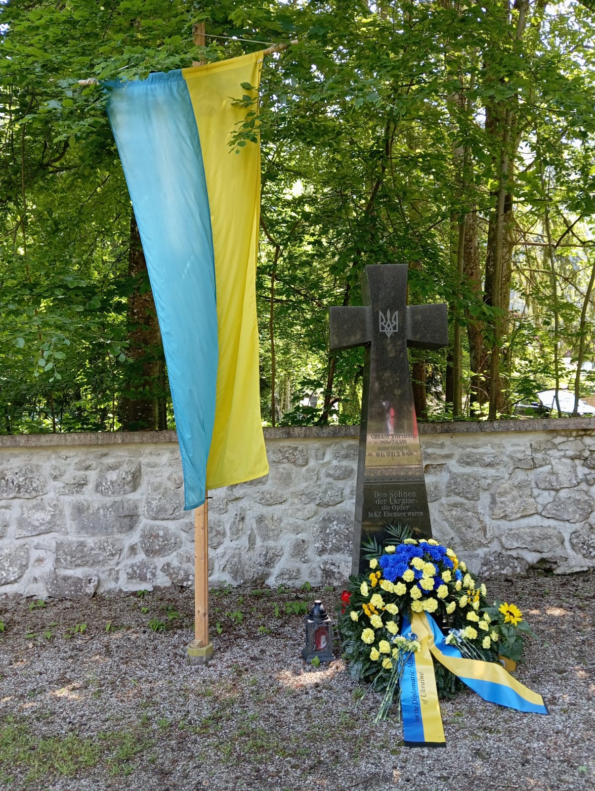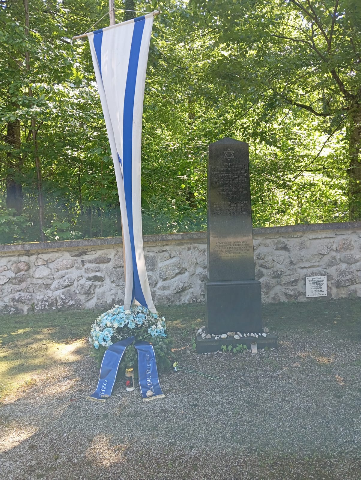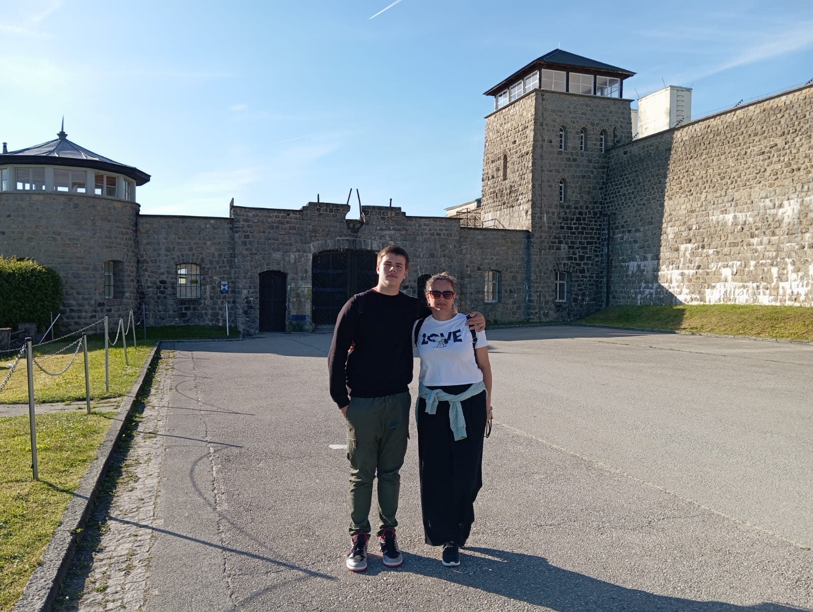 Por la tarde participamos en el campo de exterminio de Gusen en otro acto multinacional, aunque como llegamos tarde por los pelos, solo pudimos hacer el recorrido del Memorial, atestado de gente, para posteriormente descender por carretera hasta la zona de las canteras de granito, donde está la famosa «escalera de los españoles«, cuyo acceso por la parte superior e inferior estaba cerrada. Todo envuelto en un profundo silencio, que contrastaba con la belleza extraordinaria de aquel falso plácido entorno.