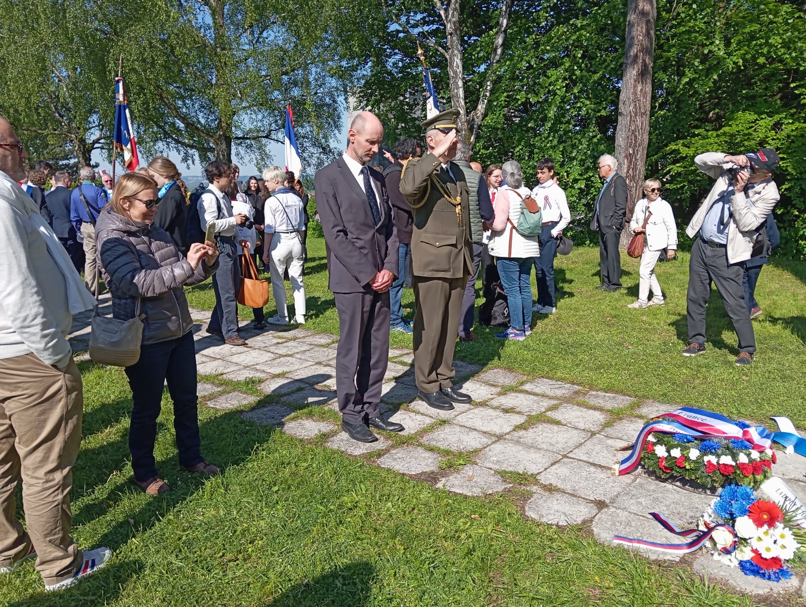 En el acto participaron representantes del gobierno francés, así como una delegación de militares de los tres Ejércitos. Finalmente todos cantamos juntos La Marsellesa.