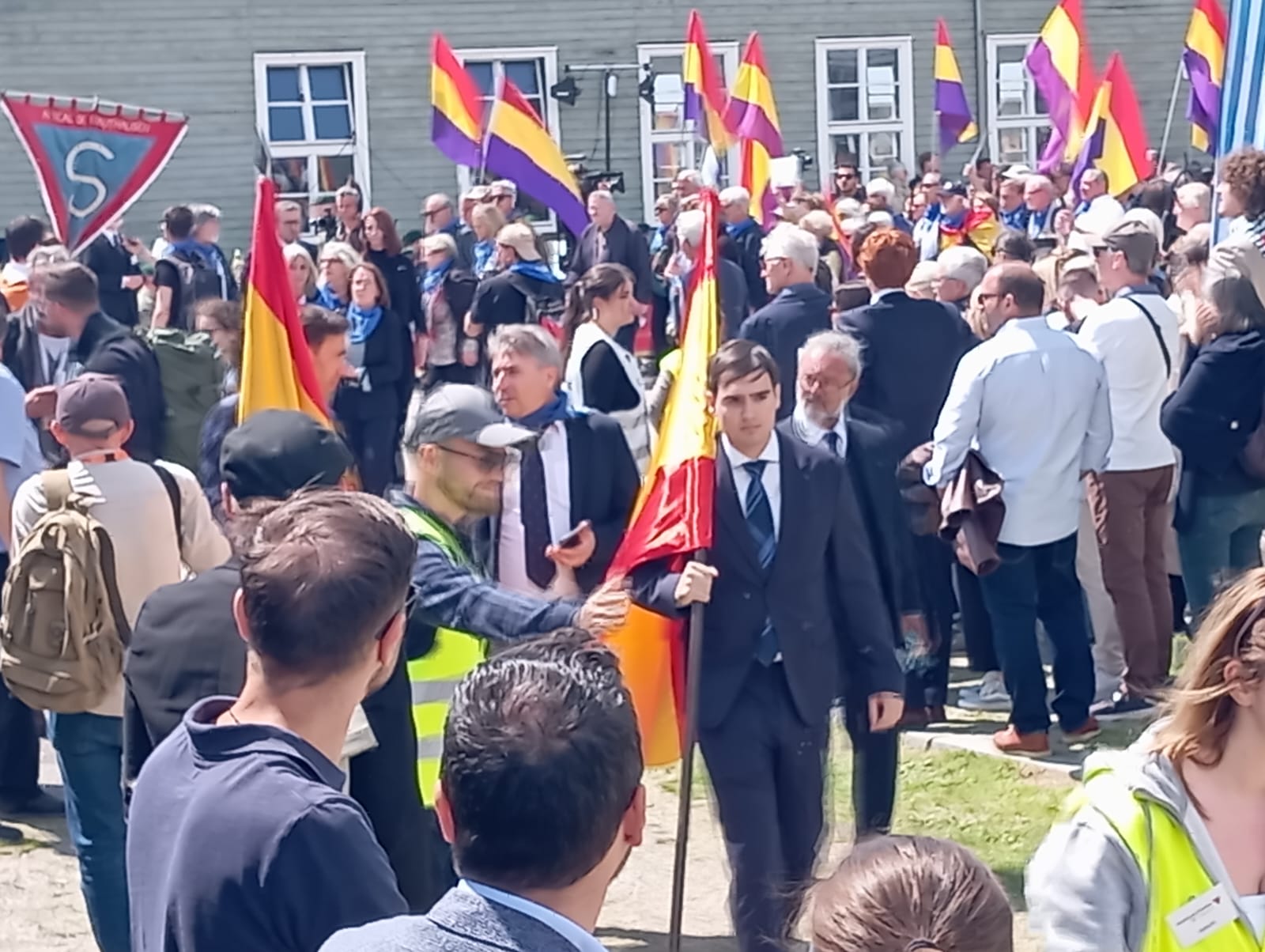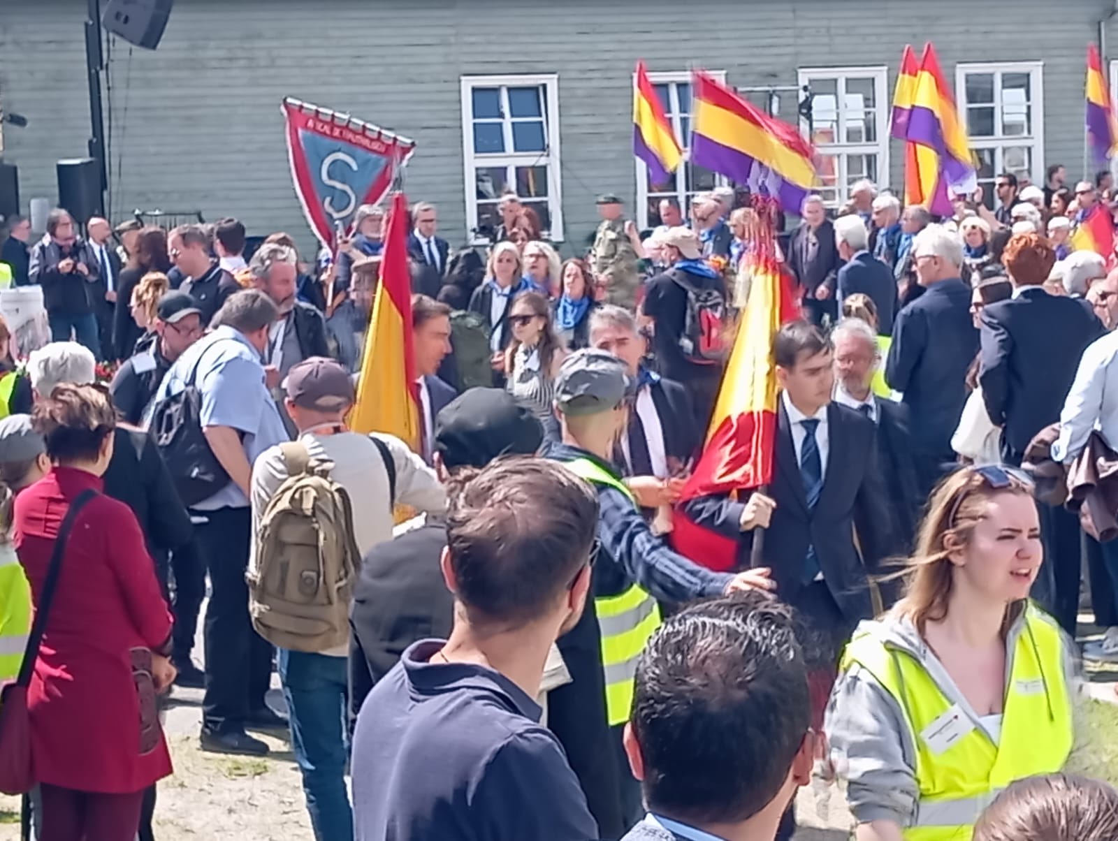 Si el rey hubiese querido de verdad honrar a los deportados españoles, lo hubiera hecho a las 9:30h ante el Memorial español y los cientos de personas allí concentrados, en lugar de parapetarse detrás de soldados y de las demás autoridades, en un espacio blindado y protegido.
