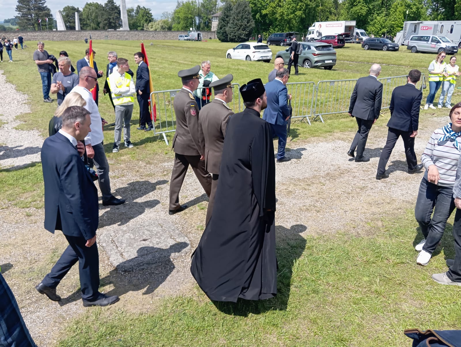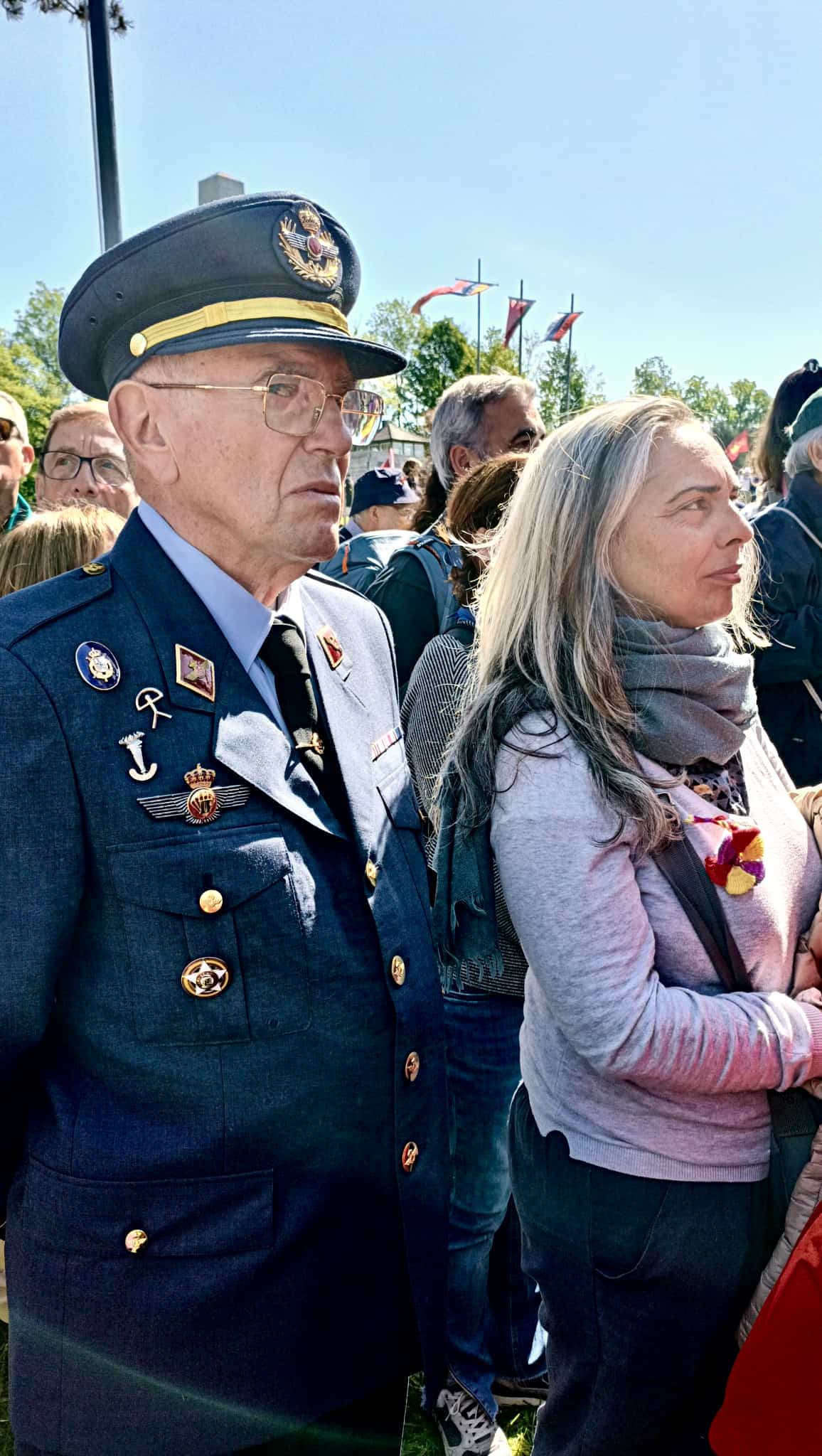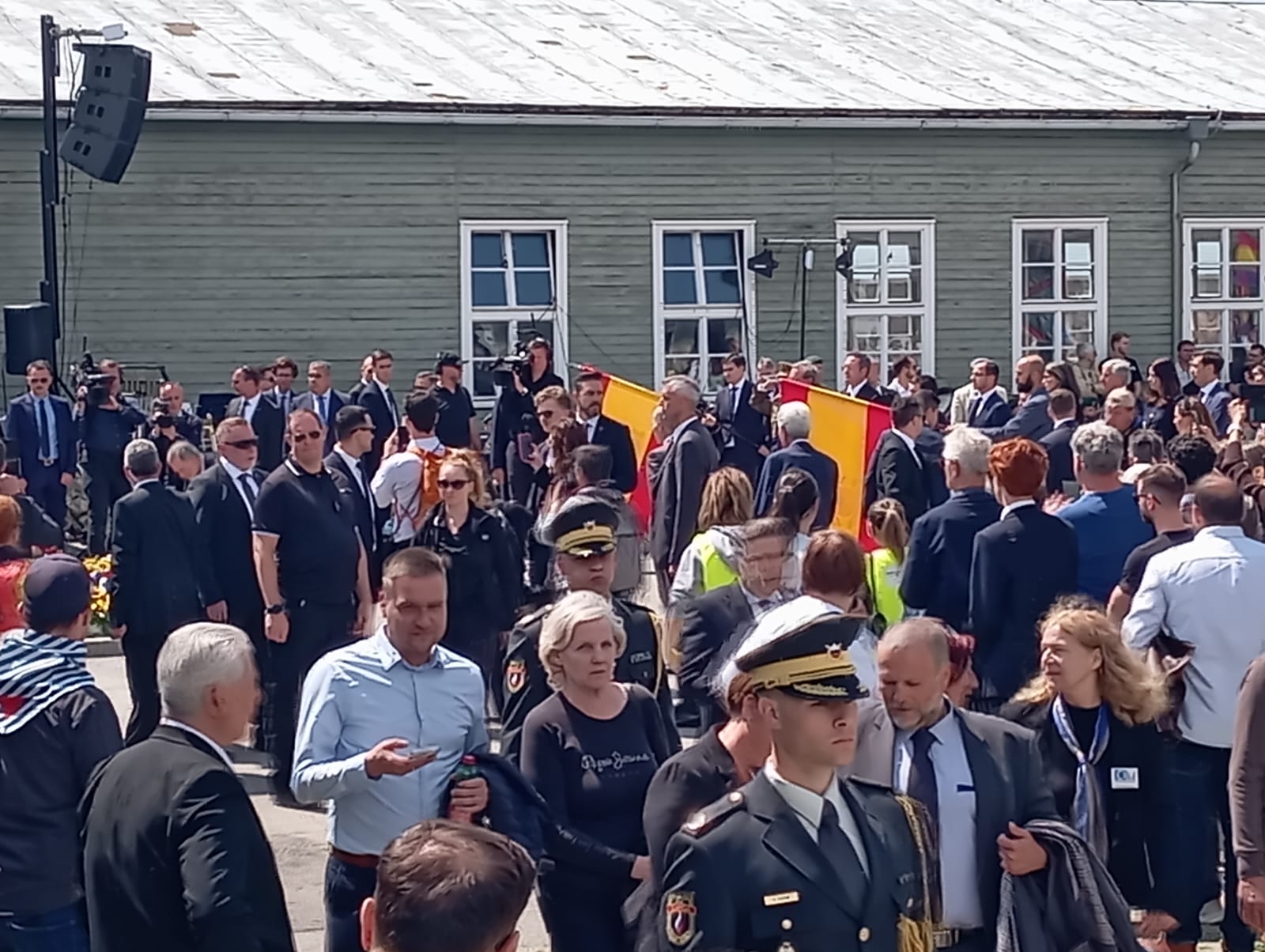 Para compensar este ominoso vacío, tuve que improvisar en medio del desfile, un gesto, que se vio correspondido por la atención y extrañeza de la plana mayor europea situada en primera fila en la Appellplatz, con el rey Felipe y doña Letizia a la cabeza.