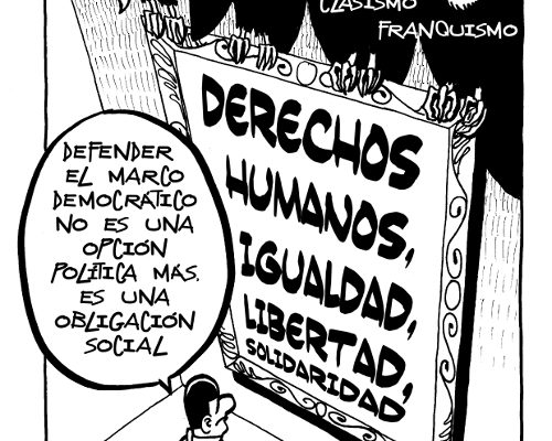 Comunicado Coral de los firmantes del Manifiesto en contra del franquismo en las Fuerzas Armadas en honor de su compañero Cabo D. Marco Antonio Santos Soto. «En un país democrático como España, ser antifranquista no es una opción política. Es una obligación de todos los